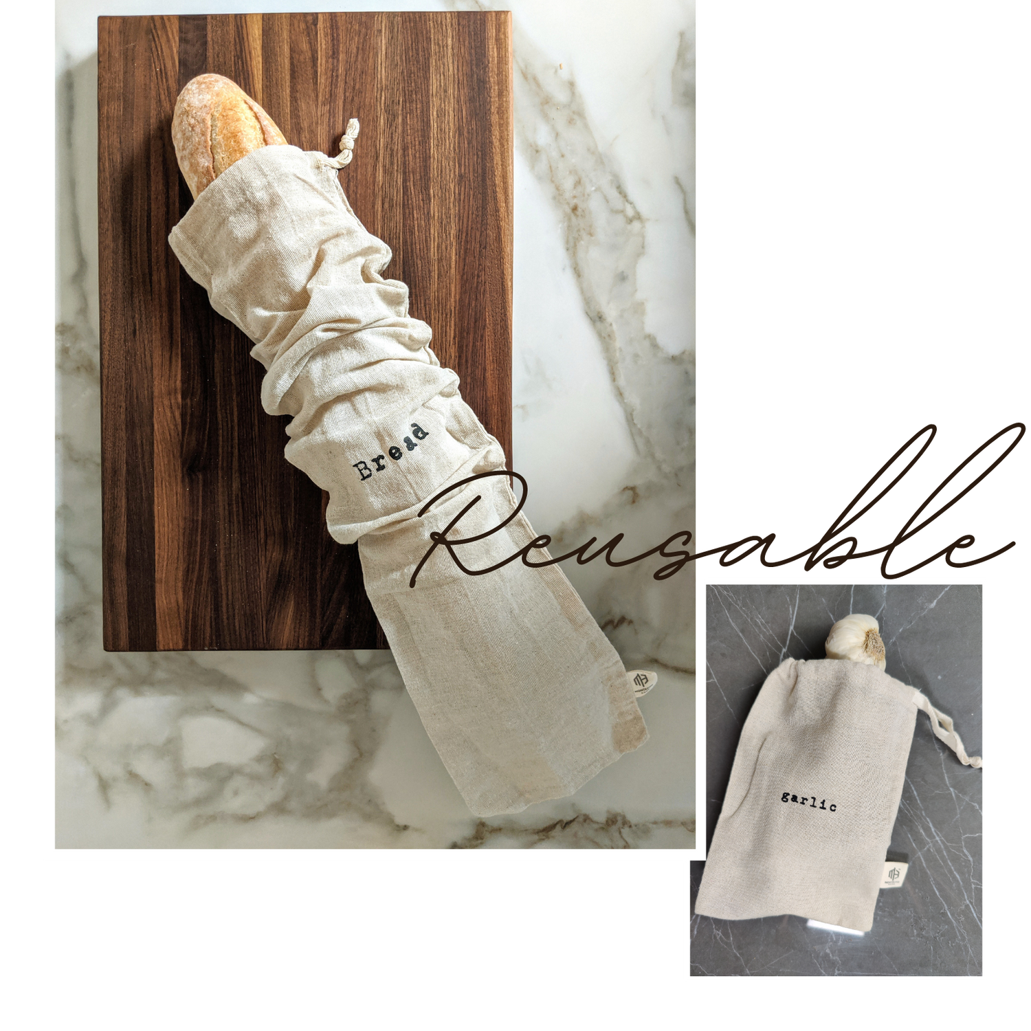 Artisan "Our Daily Bread" 100% Linen Bread Bag with Drawstring