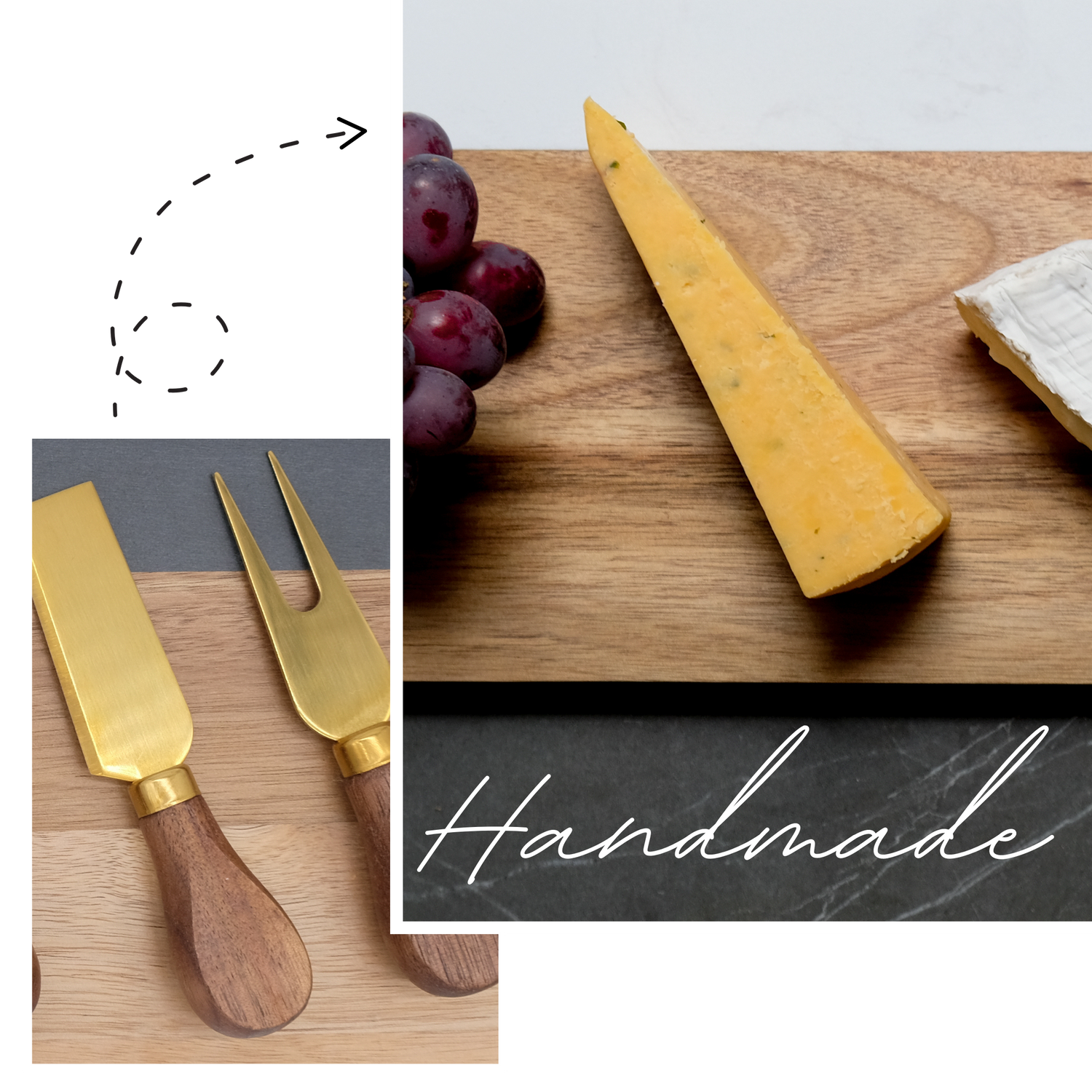 Modern Farmhouse Cheese Board - Acacia Wood with Black Slate or Faux Carrara Marble