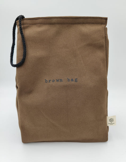 Reusable Brown Bag Lunch Bag - Heavy Duty Sustainable Cotton Sack with Velcro Top and Rope Handle