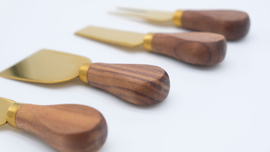 Black Walnut Handles with Gold Blade Cheese Knife Set of 4